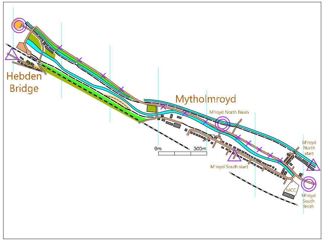 Terrain: Mytholmroyd and Hebden Bridge have the full range of Urban Orienteering features. The transition stages are mainly on the Calder Valley Greenway.